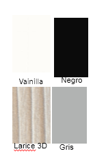 COLORES DE SUPERFICIE: Larice 3D, Negro, Gris, Fashiòn White, Vainilla